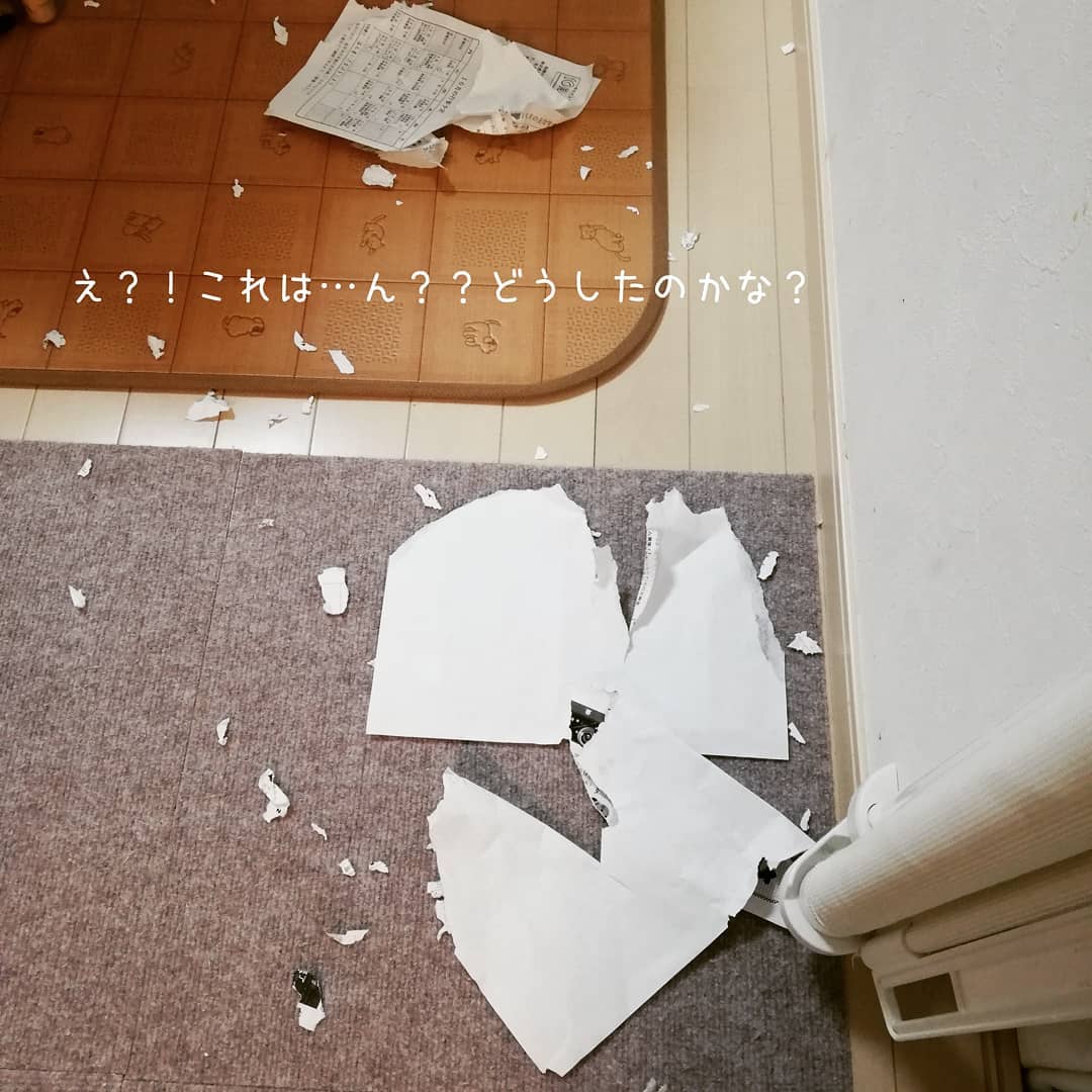 はじめてのい·た·ず·ら💕😘 帰ってきたら…紙散らかってるしー😆👍✨