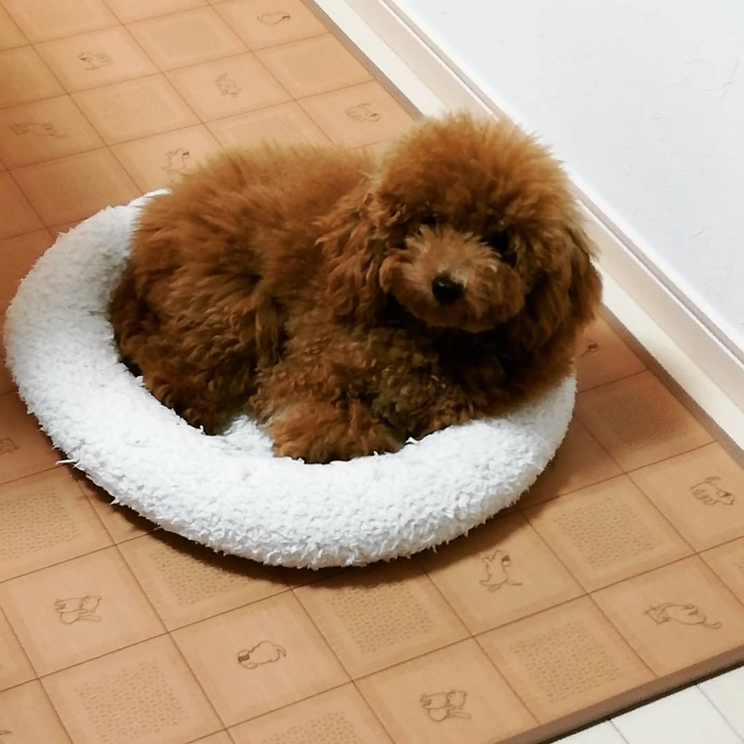 自由にしてたワンよ🐶❗ 小さいベッドがお気に入りのようで、小さく丸くなっておさまってます。