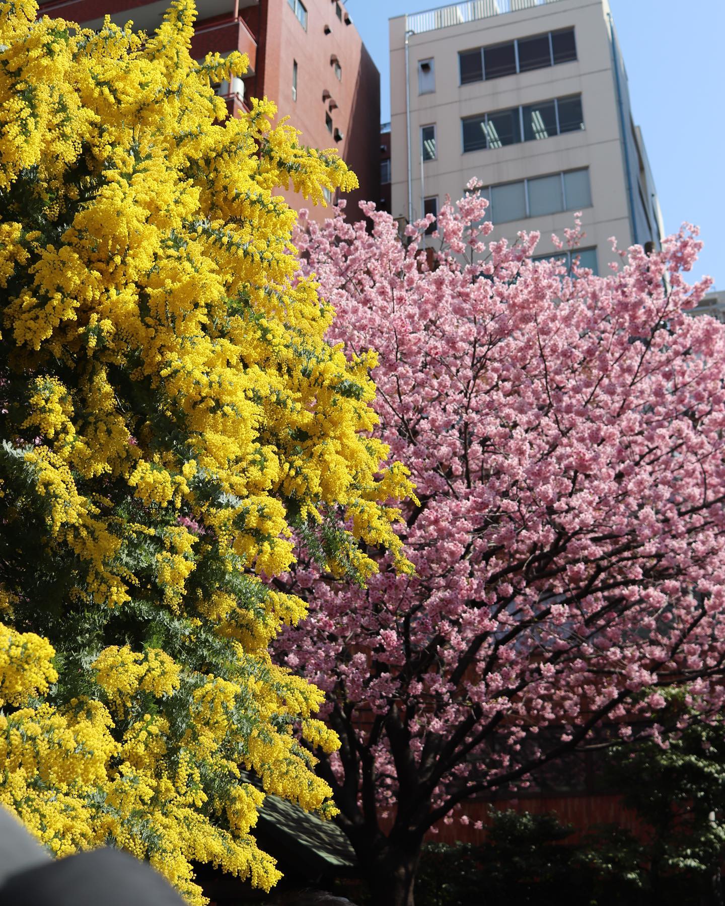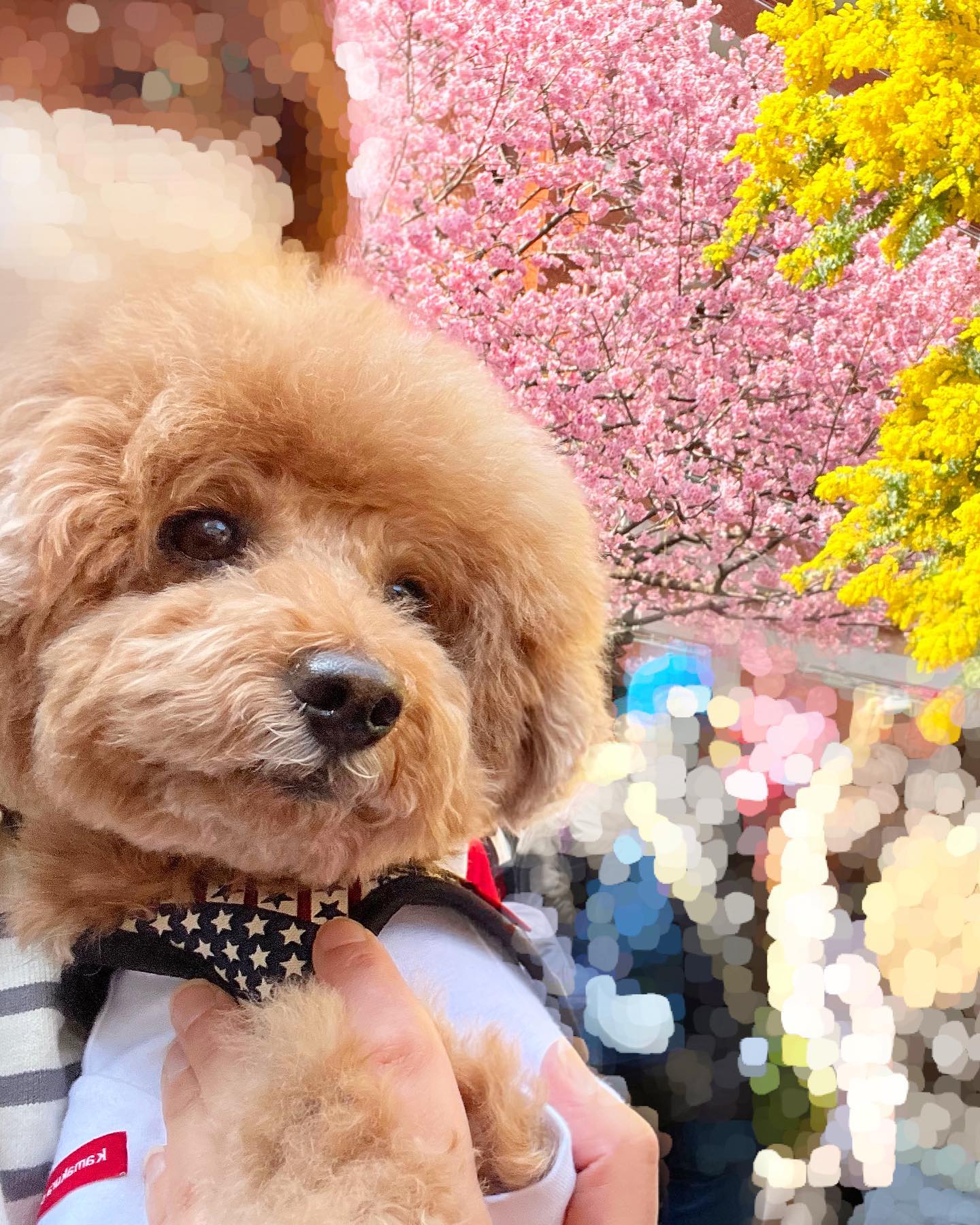 ミモザと桜の共演🐶💕