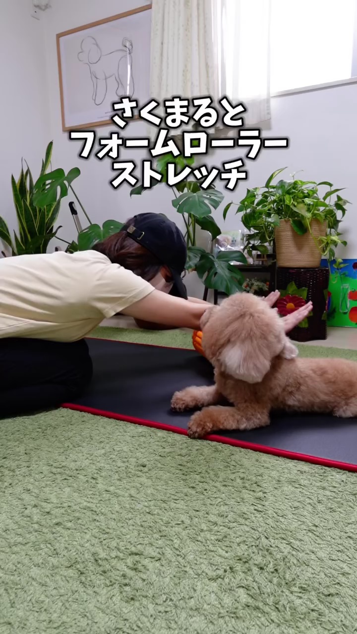 まとわりつくので、気が済むまでさくまると遊んでからストレッチです!!
