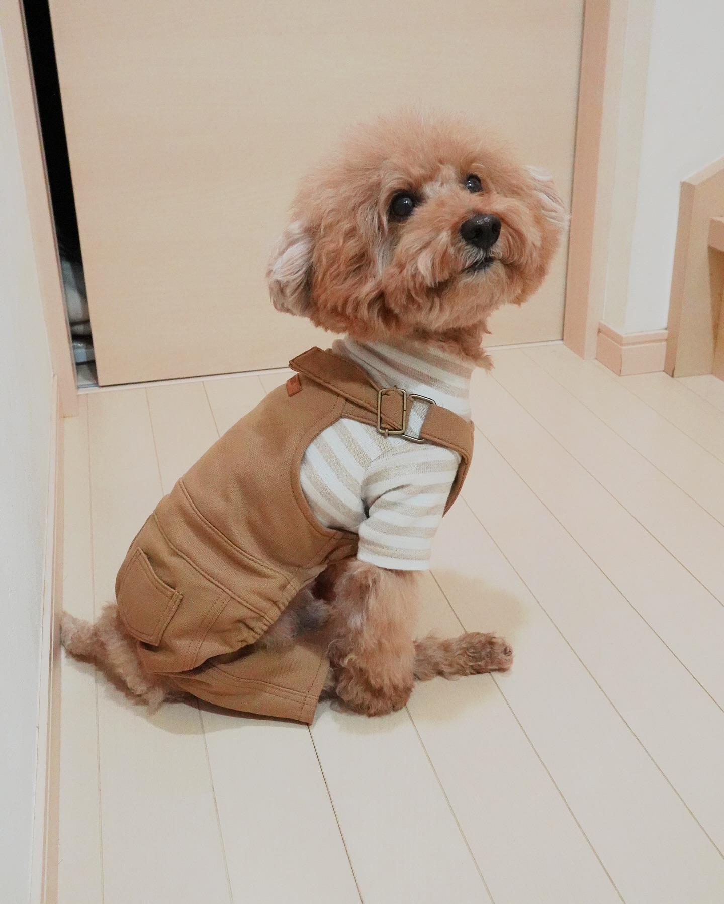 今日のお散歩ファッションはオーバーオール🐶