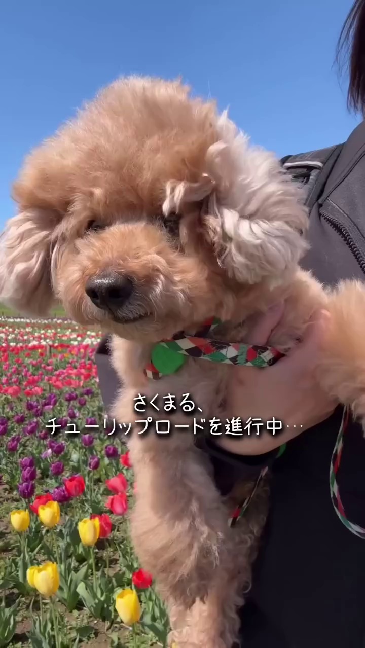 #さくまる #チューリップ畑 #春のおでかけ #花と犬