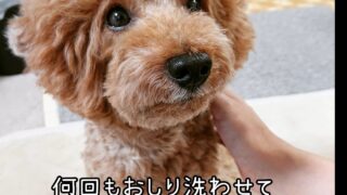 申し訳なくないよ! . . 排便毎におしり洗い なんだか、申し訳なさそうな表情🐾 . . 明日から大丈夫...