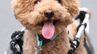 今日の写真みたら、すごく笑ってました。 毎日願うこと。 奇跡よ起これ。 . . #トイプードル#車椅子犬#wheelch...